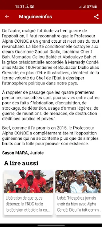Un site d'informations générales et d'opinions qui traite les informations sur la Guinée, l'Afrique et le monde avec pour ambition d'offrir des contenus fondés sur la vérité scientifique (objectivité) et se veut le relais indispensable des nouvelles de l'intérieur de la Guinée grâce à un flux d'informations plus attractif et plus innovant pour ses lecteurs.
