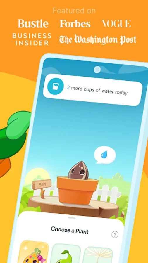 1. Grow your favorites: With plants available in 3 difficulty levels, witness your hydration habits bloom.