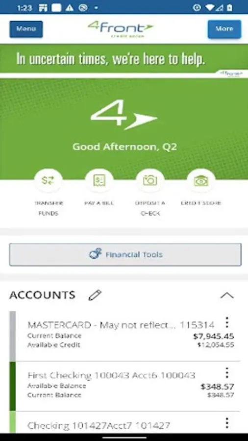 MANAGE ACCOUNTS. View current balances for your 4Front share (savings), checking, loan, and credit card accounts.