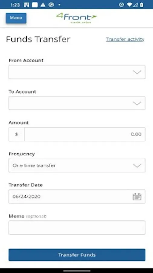 TRANSFER FUNDS. Create, approve, cancel, or view funds transfers between eligible 4Front accounts.