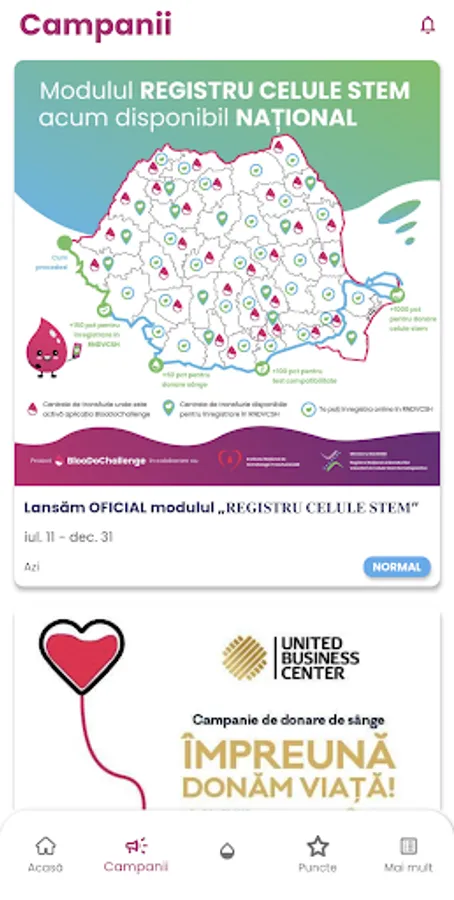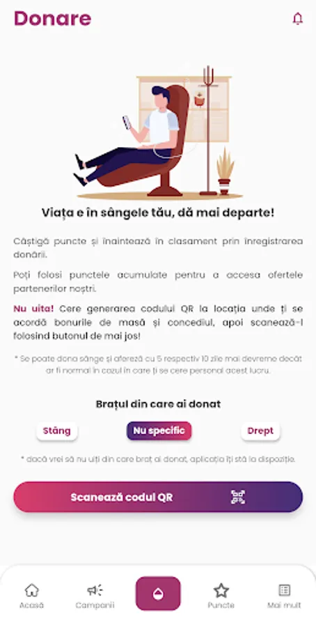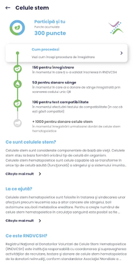 - Acumulezi puncte în urma înregistrării donării de sânge(40/50 - bărbați/femei) sau afereză(40)