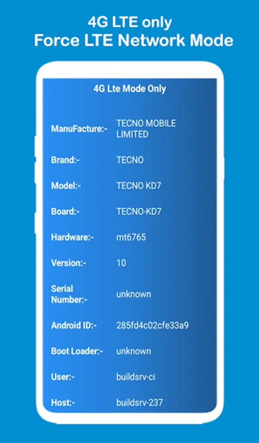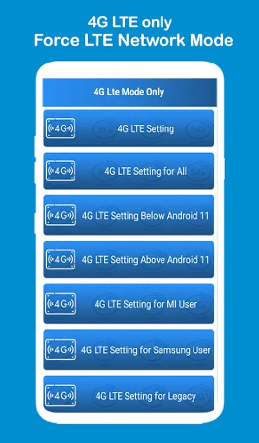 Force 4G or any other network type or mode. Now supports 4G network for appropriate devices. You can use this app to easily Force 4G or any other type of network for free.