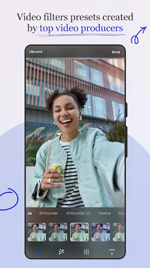 Super simply choose and apply video filters on your videos. The presets contain many video filters that were created with top video producers. Don’t be shy, express your creativity and share with people.