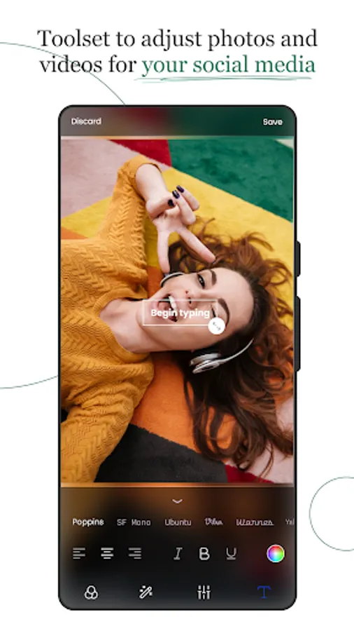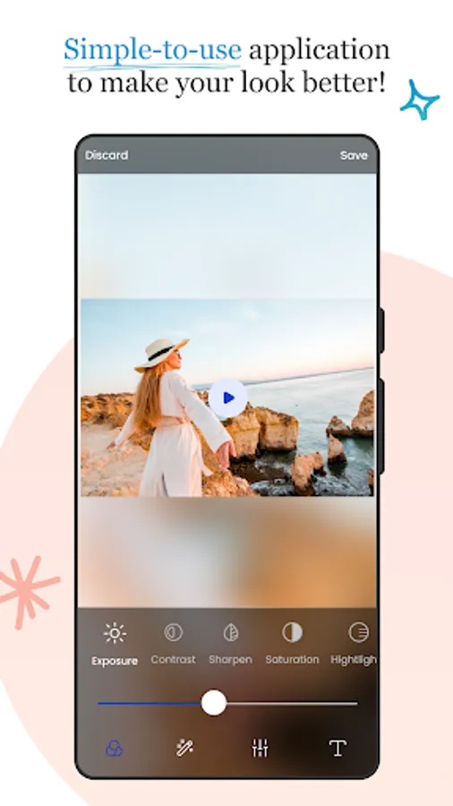 Easily add texts, adjust contrast, exposure, highlights, sharpen, and saturation on your photos and videos. Simple and clear UI makes the creative process so easy and enjoyable.