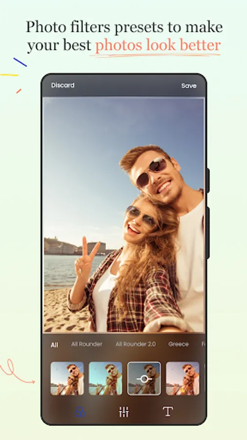 Application contains hundreds of dollars worth beautiful presets for photo filtering. Choose among many filters the one that best matches your today’s mood and easily share your better look via social media.