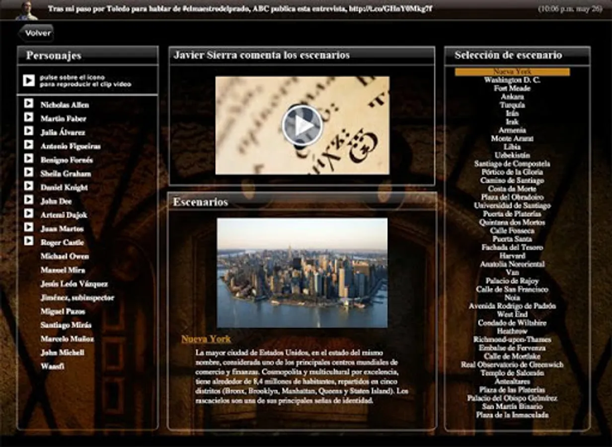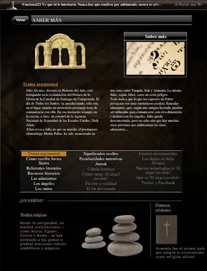 The application offers many more attractions for the reader as well as the interview with Javier Sierra: