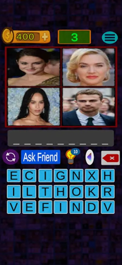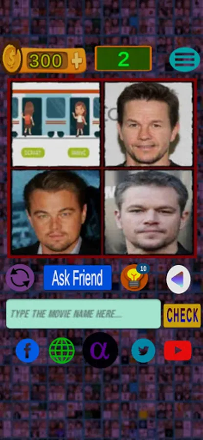 -> In the game 4 pics which are linked with the movie will be given.