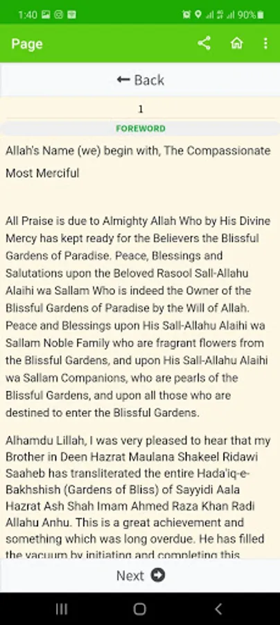 Alhamdu Lillah, I was very pleased to hear that my Brother in Deen Hazrat Maulana Shakeel Ridawi Saaheb has transliterated the entire Hada'iq-e-Bakhshish (Gardens of Bliss) of Sayyidi Aala Hazrat Ash Shah Imam Ahmed Raza Khan Radi Allahu Anhu. This is a great achievement and something which was long overdue. He has filled the vacuum by initiating and completing this blessed task. This book will certainly be very helpful to those who cannot read Urdu, but have the zest to recite Hamd, Na'at and Manqabats.