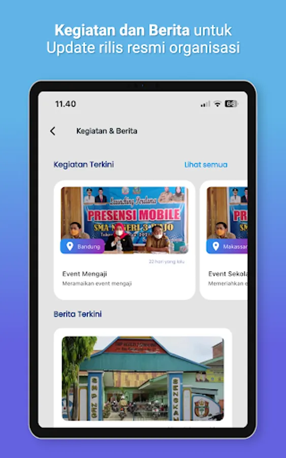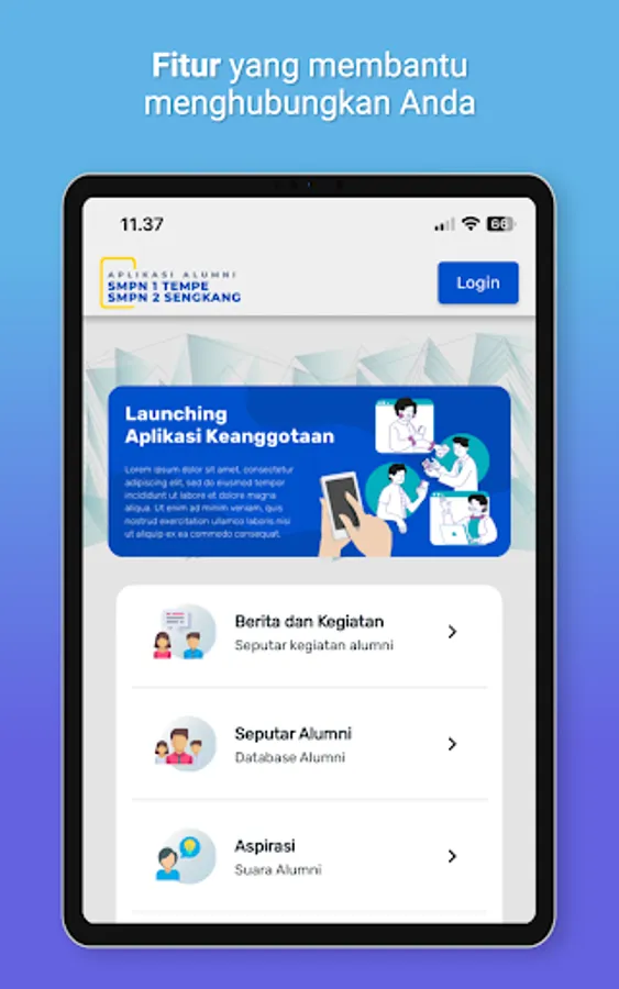 The alumni application for SMPN 1 Tempe and SMPN 2 Sengkang is a digital platform specifically designed to connect and facilitate communication between alumni from the two schools. This application allows alumni to stay connected, share experiences, and coordinate in various activities such as reunions, donations, and share information about alumni achievements and achievements. In addition, this application also provides access to the latest news and events from both schools, enabling alumni to continue to support educational developments at SMPN 1 Tempe and SMPN 2 Sengkang. With interactive and comprehensive features, this alumni app aims to strengthen ties between alumni of the two schools and help build a strong community and contribute positively to the future of education.