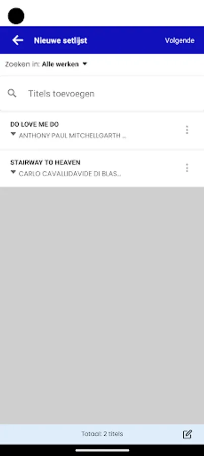Do you perform with songs that you have written yourself? Then you can indicate this in "My set lists". Have the songs you wrote been performed by someone else? Then you can indicate this in "My titles (performed by others)".