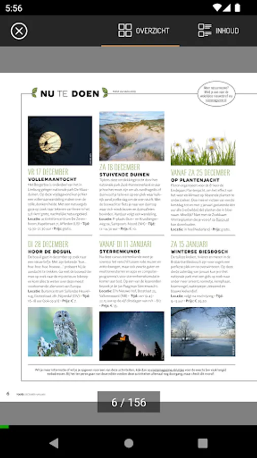 In any case, every month a unique Roots walk with a route map and GPS track * the columns of journalist and birdwatcher Saskia van Loenen and biologist René Krekels * photos of readers in Photo of the Month * What a question! With expert answers to nature's most intriguing questions * stargazing with Govert Schilling.