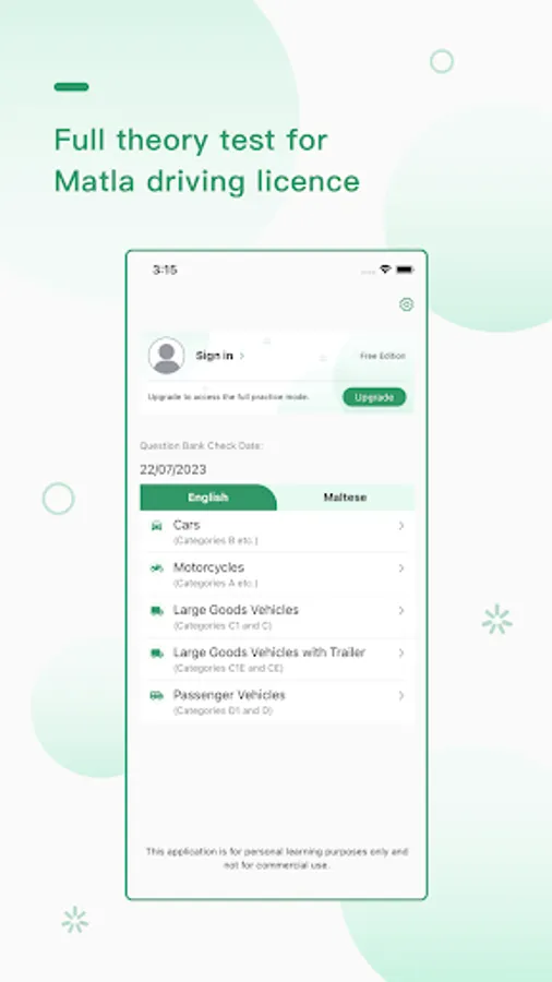 • Full theory test for Malta driving license