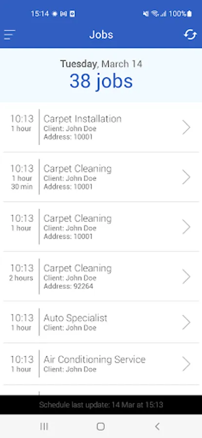 Professionals can easily see their work schedule, upcoming jobs, and detailed job information straight from the app.