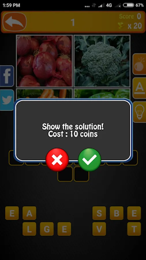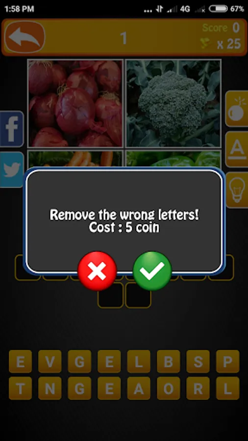 In 4 Pics 1 Word game you can play with clues and also remove the wrong letter. After add a correct answer coin will be added automatically to your wallet. But if you see the hint this app charge a small amount of coin before the display.