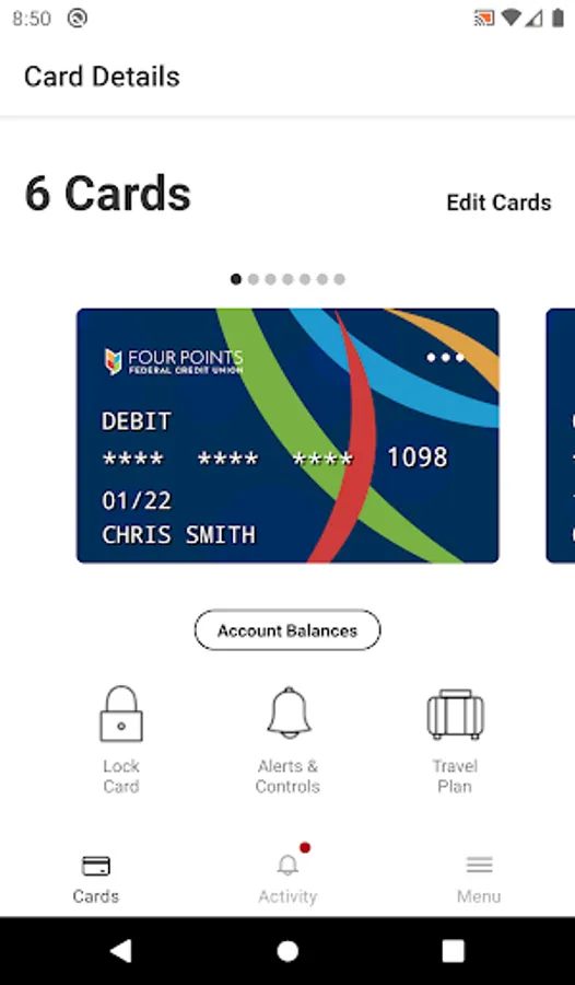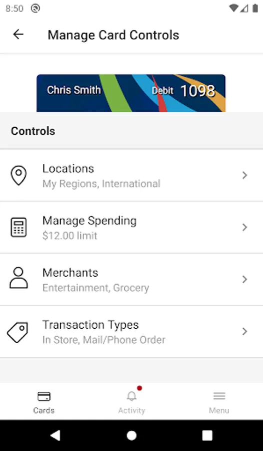Alerts for PIN and signature transactions can be set up to keep you informed of your card usage and help you quickly detect unauthorized or fraudulent activity. This app can send an alert when a card is used or when a card transaction has been attempted but is declined – and additional customizable alert options are available. Alerts are sent in real time, immediately after a transaction has taken place.