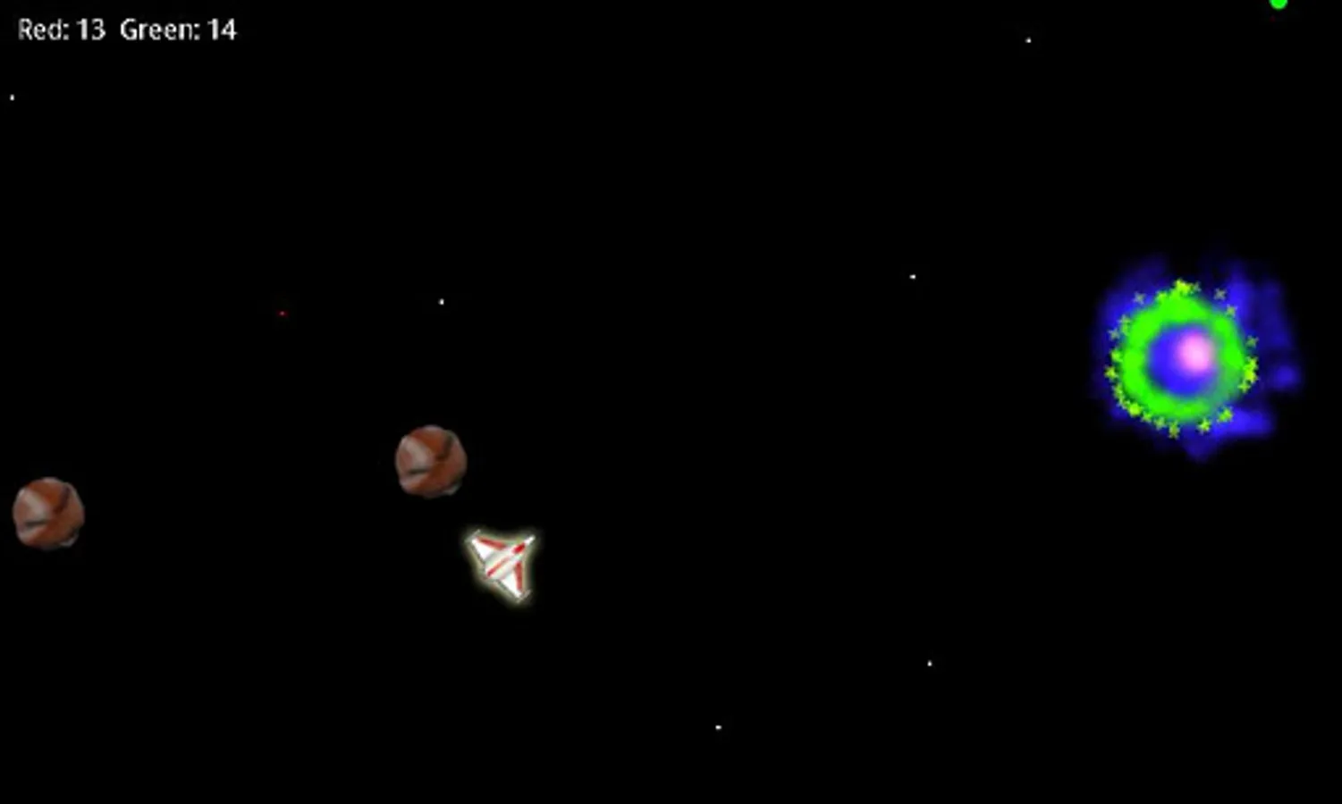 Space Ball is a mode in which the goal is to capture a star and take it your base. Your base is the same color as your ship and slowly rotates around the game arena. When you deliver the star to your base, it will explode and you will score seven points. Whenever you kill an enemy ship, you will score three points.