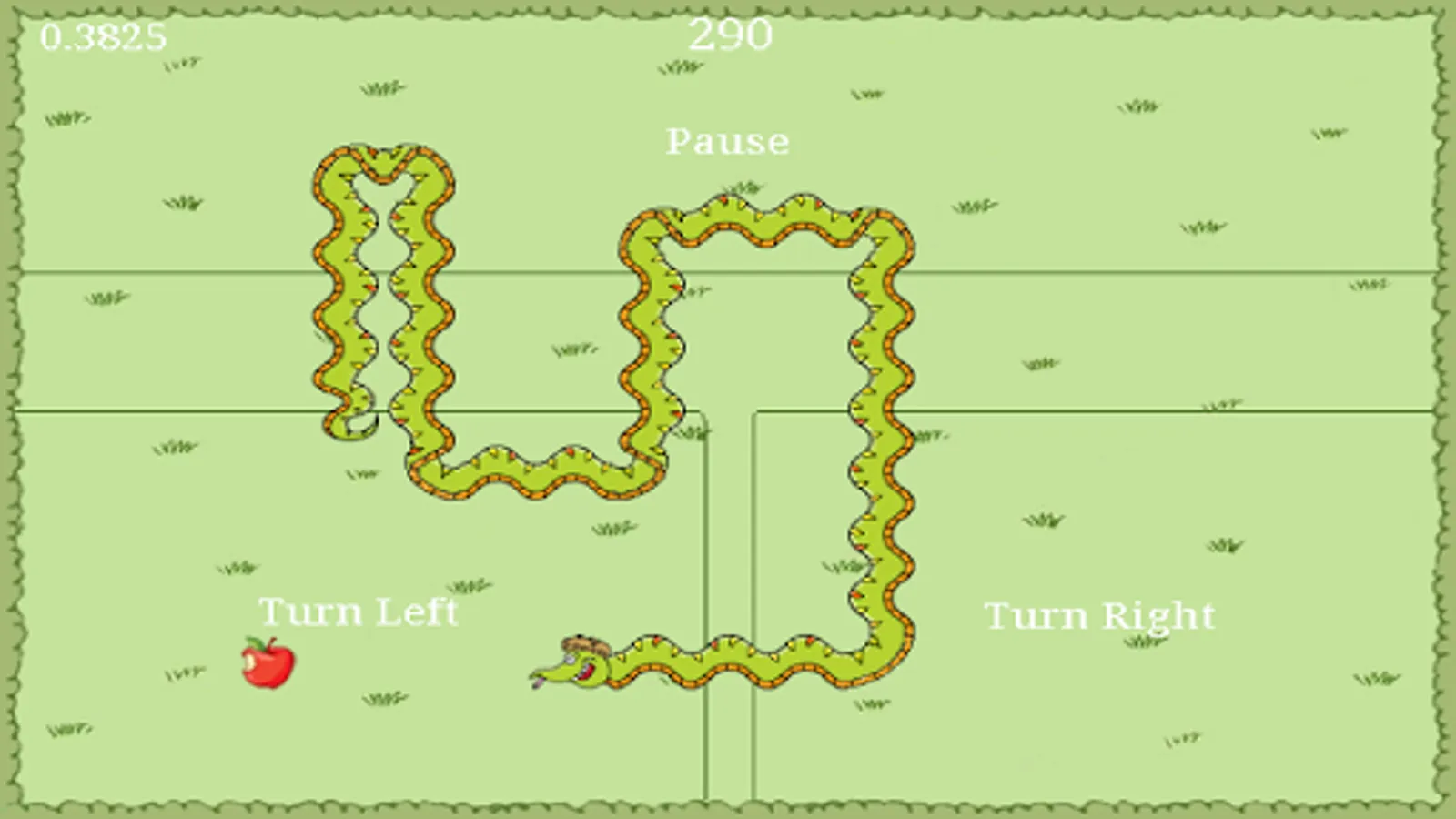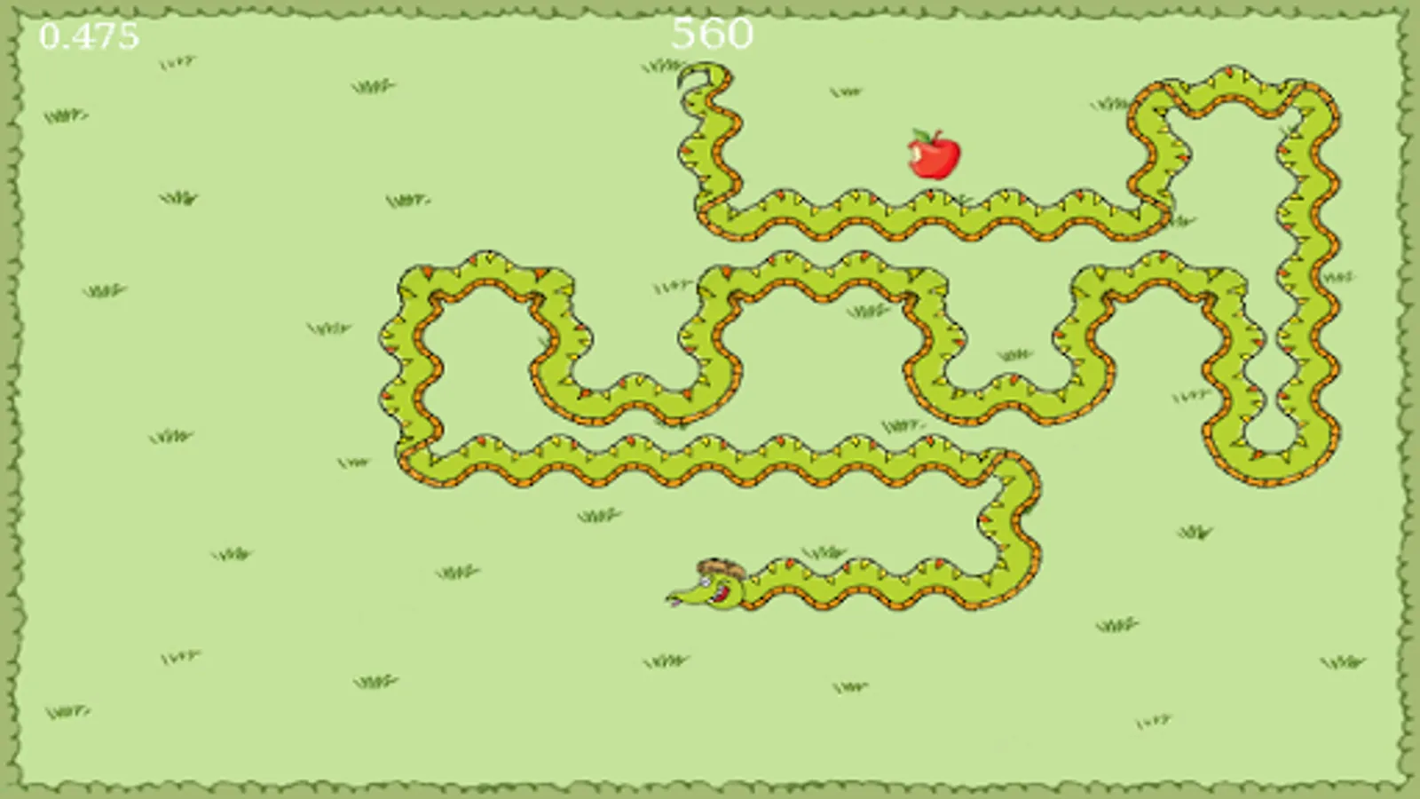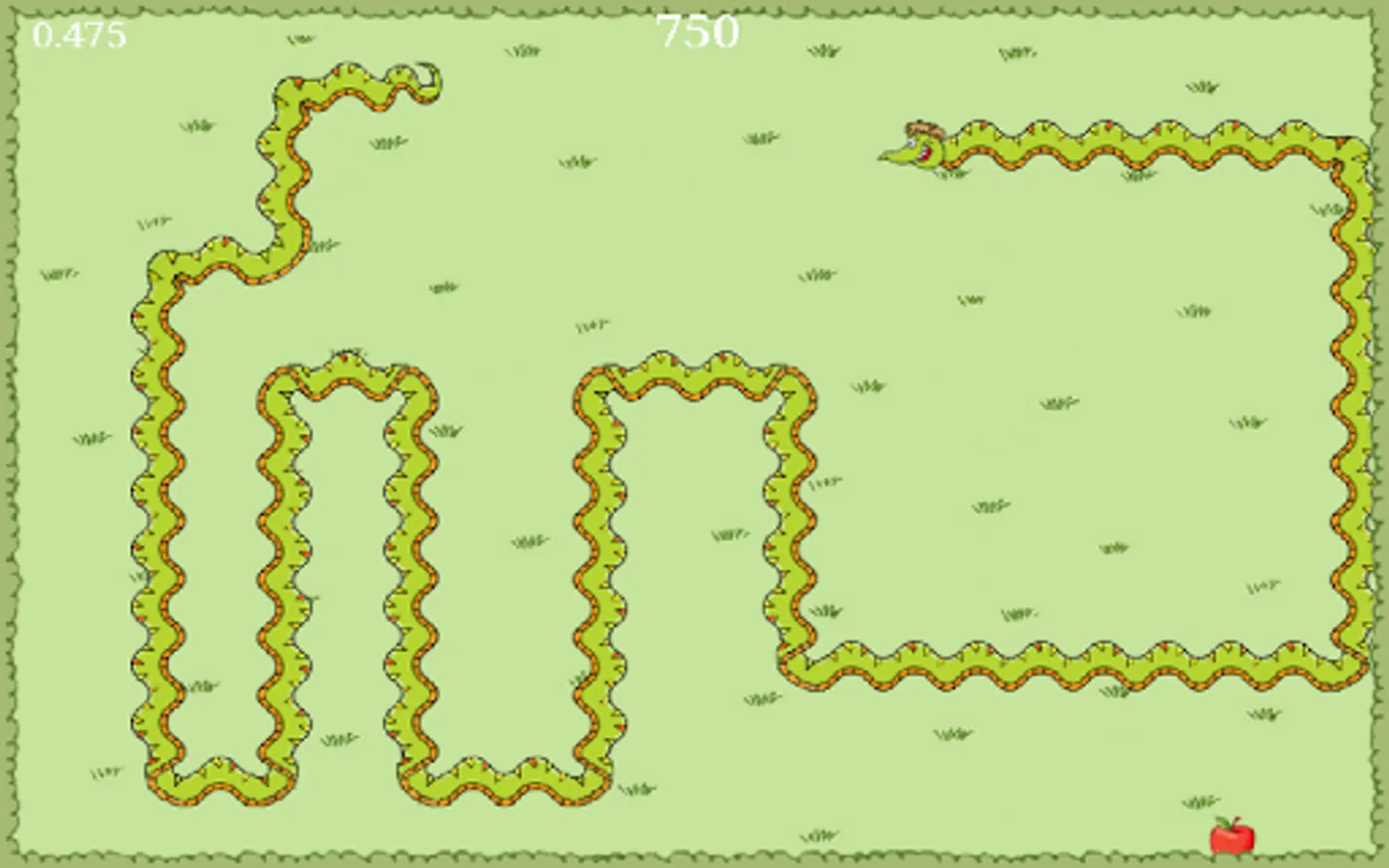 Simple Jack is not a smart snake but he loves apples. They make him extremely happy! The more apples that he eats, the bigger and faster he will become. The controls are very simple, he can turn left and right but he doesn't like it when he tries to eat himself or when he runs into the hedges.