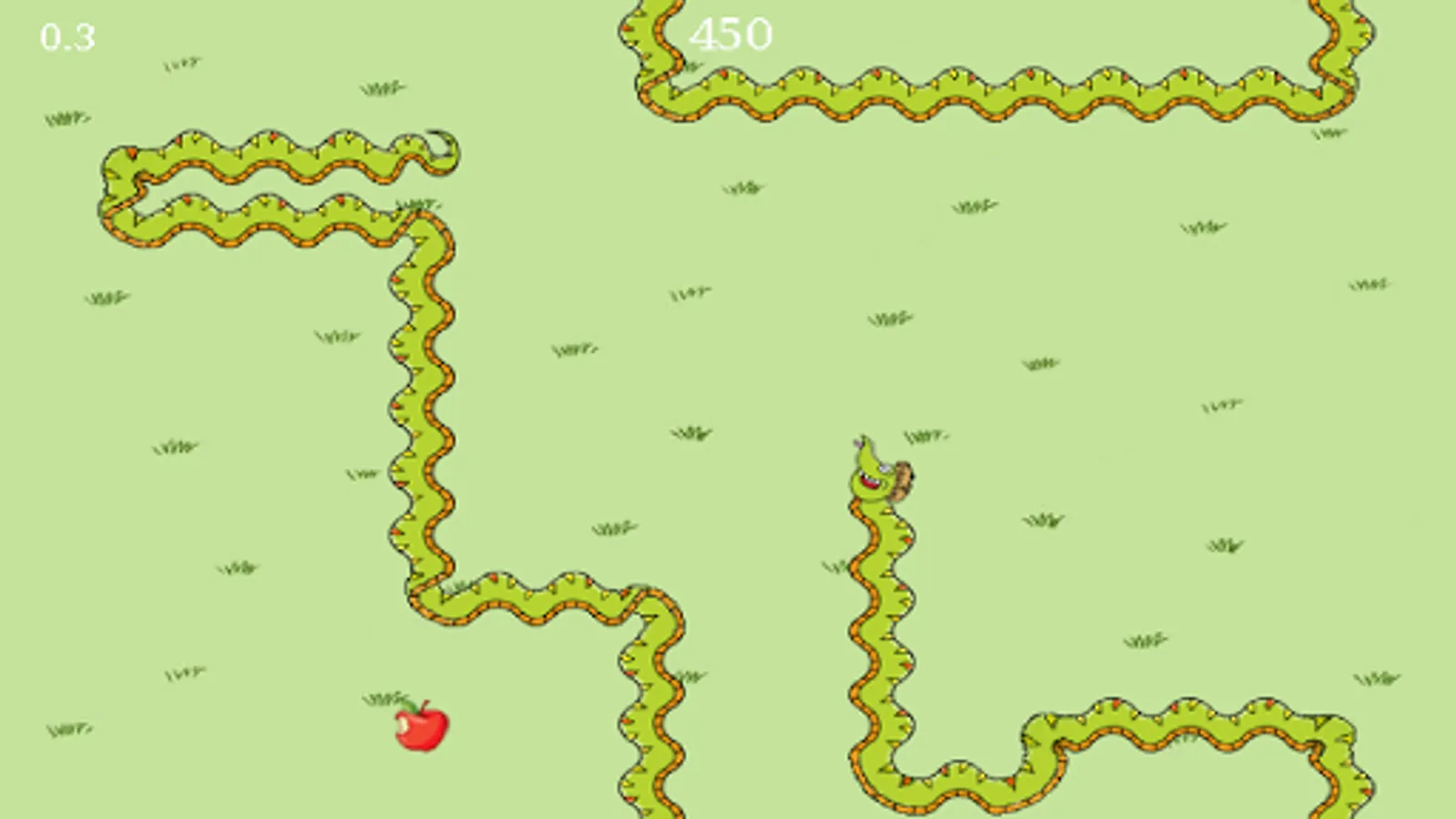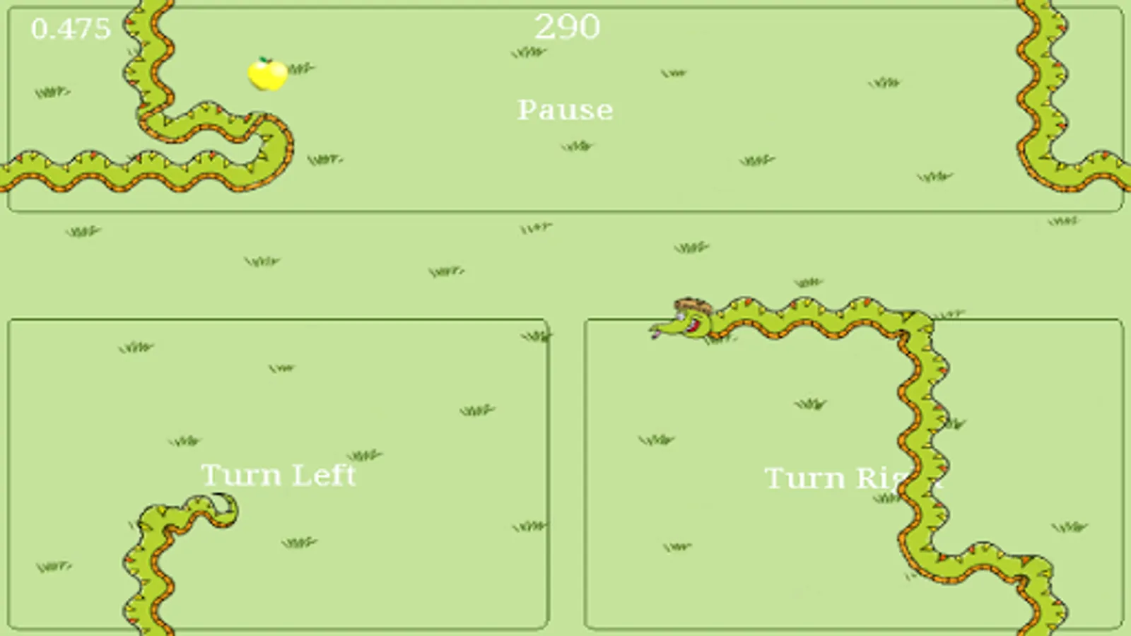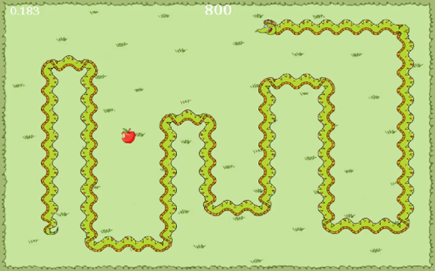 Simple Jack is not a smart snake but he loves apples. They make him extremely happy! The more apples that he eats, the bigger and faster he will become. The controls are very simple, he can turn left and right but he doesn't like it when he tries to eat himself or when he runs into the hedges.