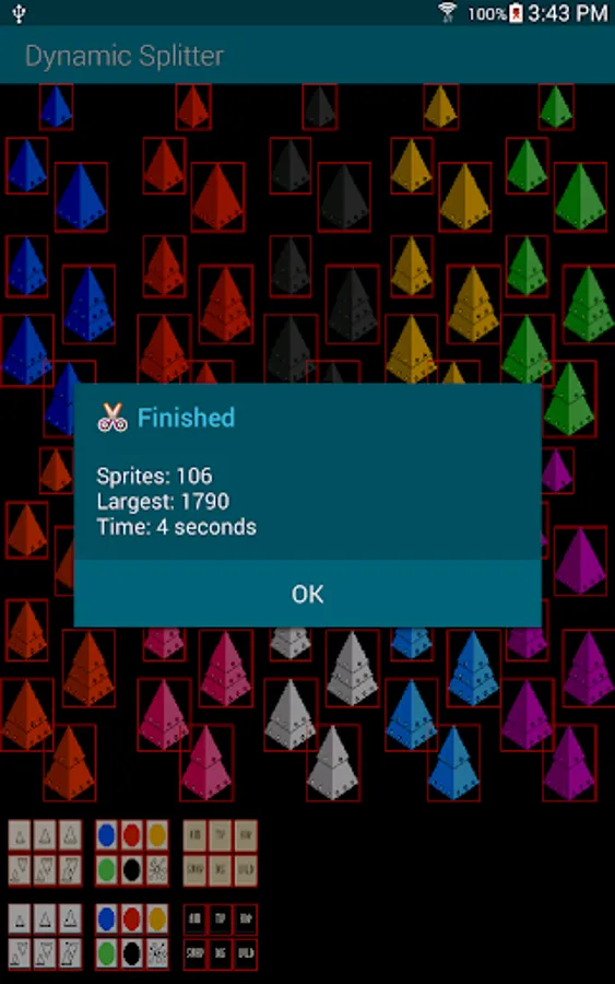 This application will dynamically split a sprite texture atlas map into individual sprites by using an algorithm to determine the transparent pixels around each sprite.