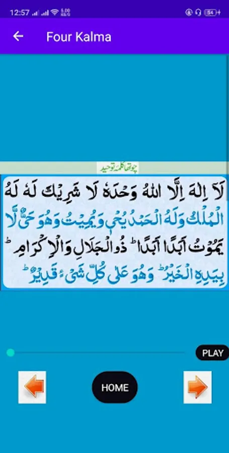 In this application contain 4 qul , 6 kalima , nemaze janaza , ayatul kursi, and surah fatiha .
