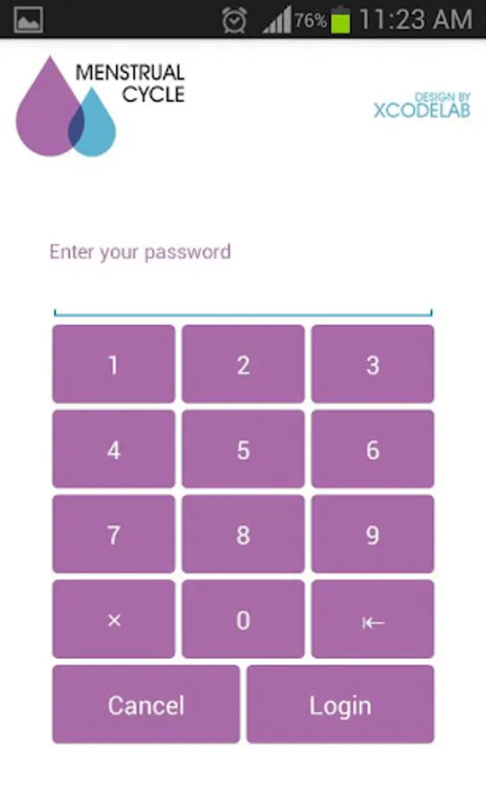 - Menstrual / Period Calendar with simple event: touch to manage info, slide to move to next or previous month.