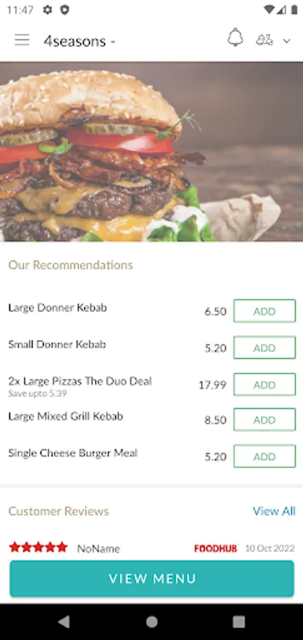 Order food online from one of the finest takeaways in town. Here at 4seasons - in Fallings Park, and are proud to serve the surrounding area. We serve a variety of food such as pizzas, burgers, wraps, kebabs and more. You can find our whole menu on our app, filled with mouth-watering dishes and catering for all kinds of different tastes!