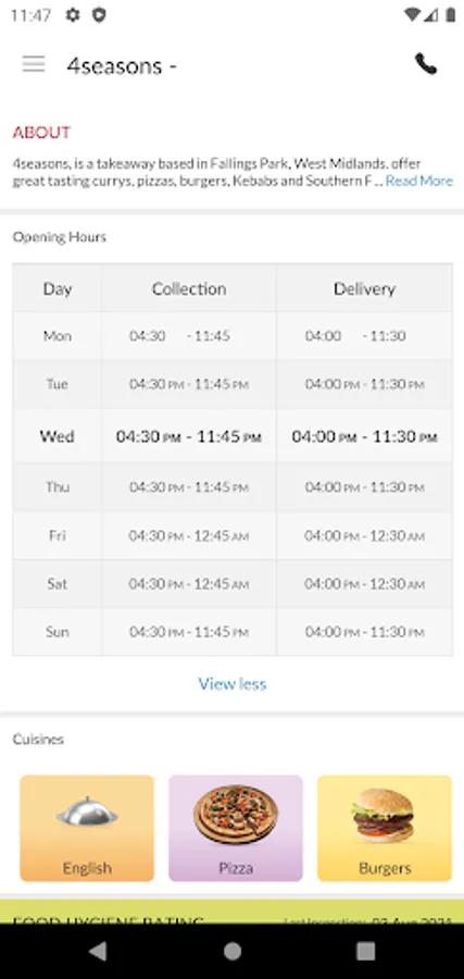 Thank you for visiting 4seasons - in Fallings Park. We hope you enjoy our online ordering app and your food.