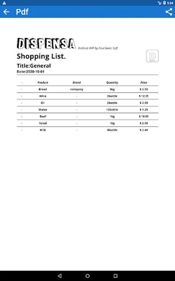DISPENSA does not contain advertisements or additional purchases within the application.