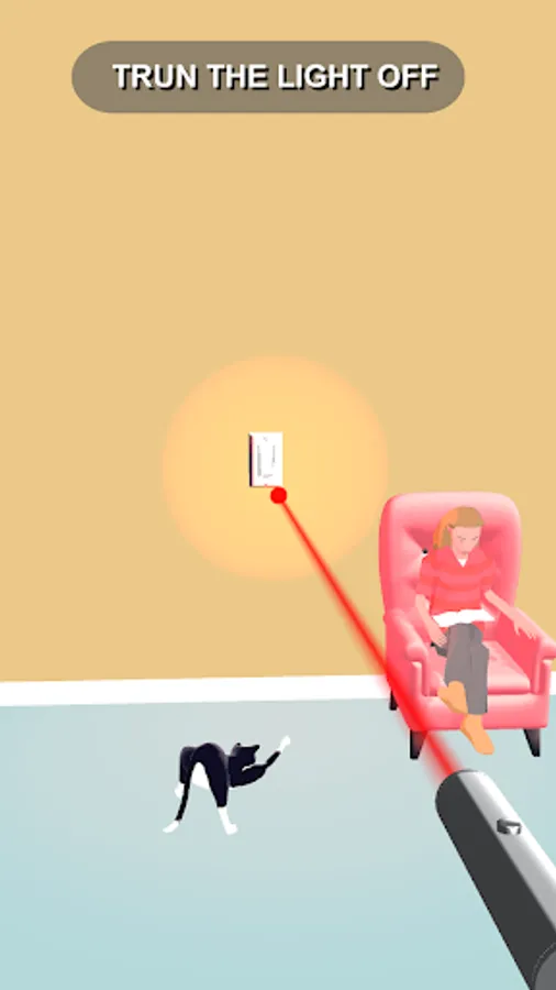 Once you shoot the laser to a switch, your cat goes to the switch and turn it off.