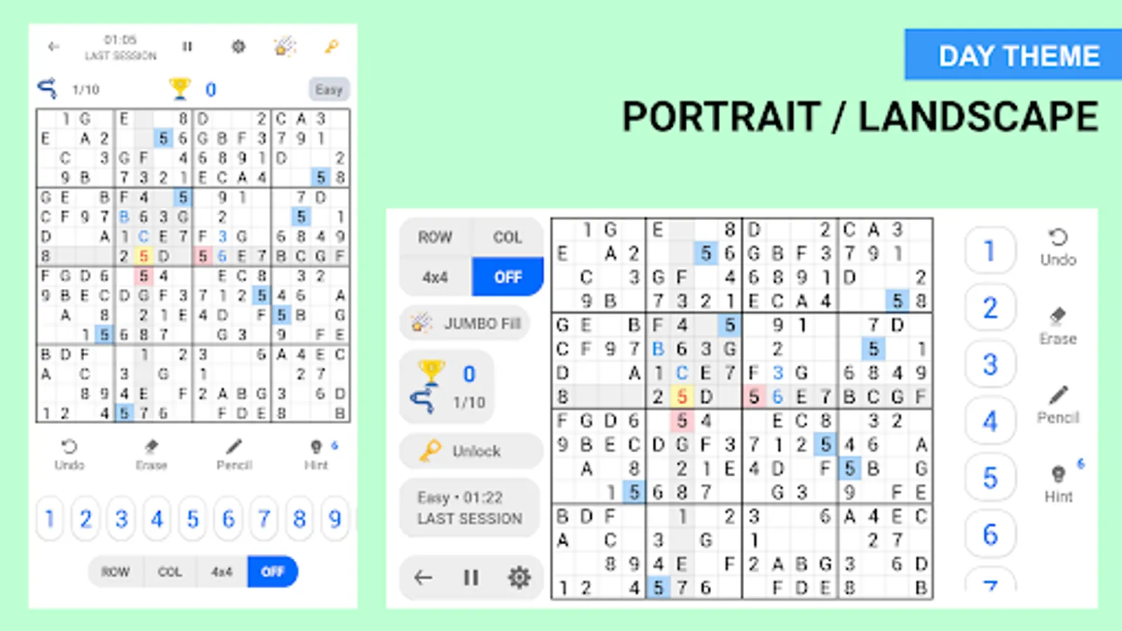 While trying to solve Sudoku, you’ve to ensure no digit or alphabet appears twice in the same row, column or box of corresponding selected cell. In our game, you won’t only enjoy brain power, but also learn many techniques on how to solve it.