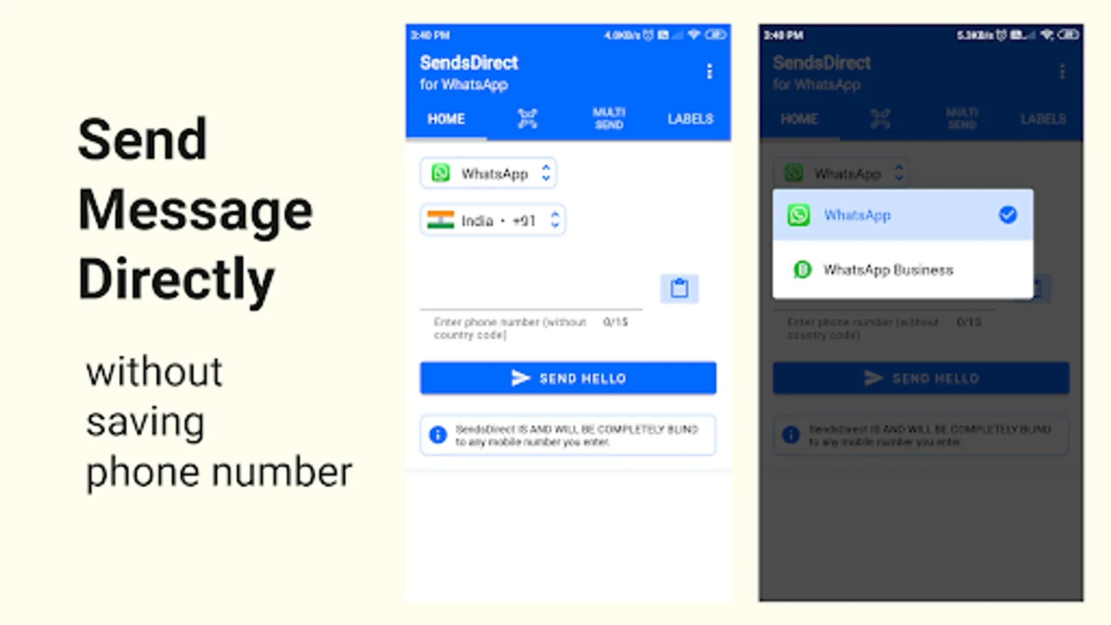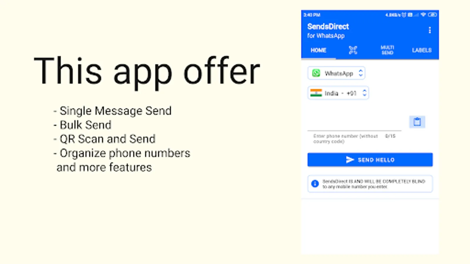 This app is best for WhatsApp marketers as they are constantly send direct messages to needy. All the marketers need to do is save phone numbers in the app and start sending messages. SendsDirect app promise to be completely blind to any phone number you enter in the app.