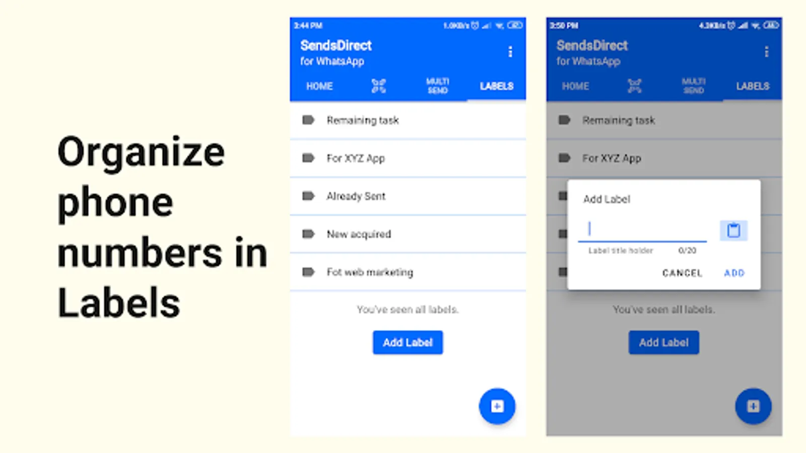 ✓ Organize contacts using labels for better accessibility