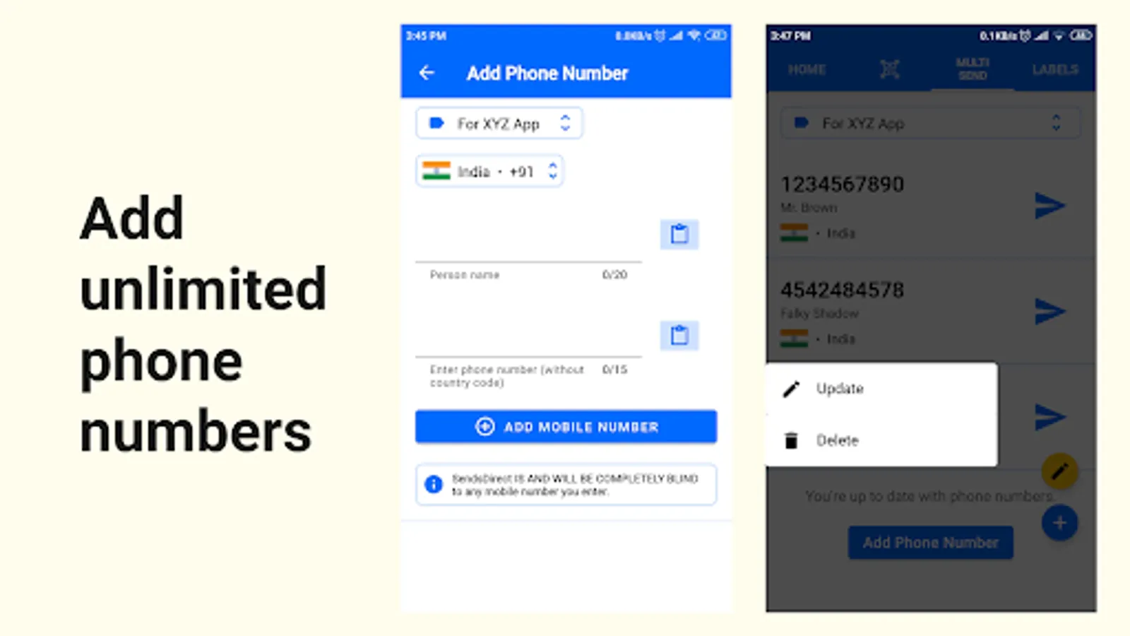 ✓ Can delete or modify the phone numbers through a single click