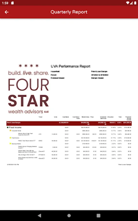 Aside from easier and faster access to financial statements, FourStar Wealth enables investors to view quarterly reports, a portfolio appraisal, performance reports, and estimated income.