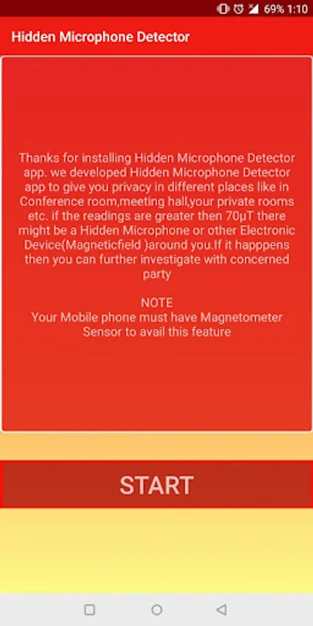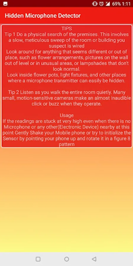 Note : If Hidden Microphone Detector does not work correctly or Sensor giving inaccurate readings then there might be problem in magnetic sensor of your device.