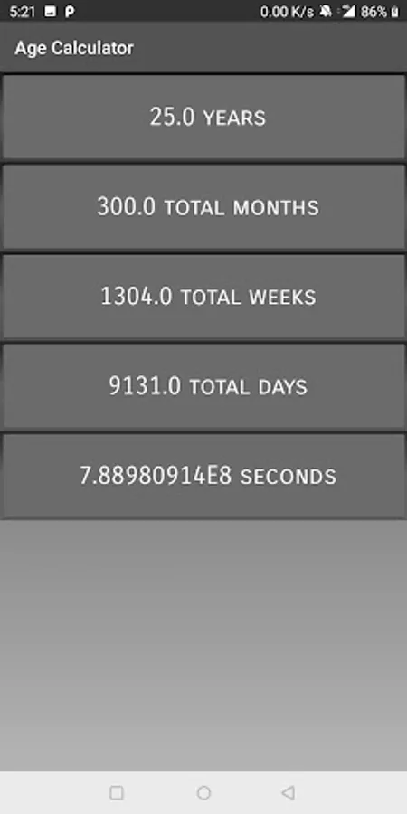 Age Calculator is a special app that can be used to calculate the amount of time between certain dates such as dates of birth and current date to produce an accurate and almost instant result. Simply input the data that you are interested in and accurate results will be delivered almost instantly.