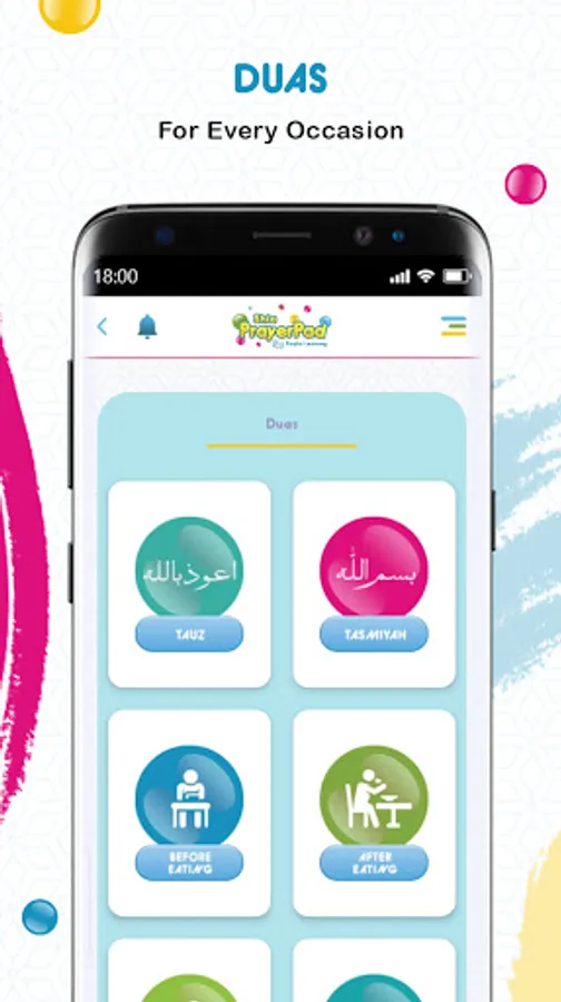 PrayerPad has pre-recorded keys to educate children about Salah, for example, prayer names, surahs, basic duas, and more. It educates learners about Salah times and what to state during different positions and various bodily movements.