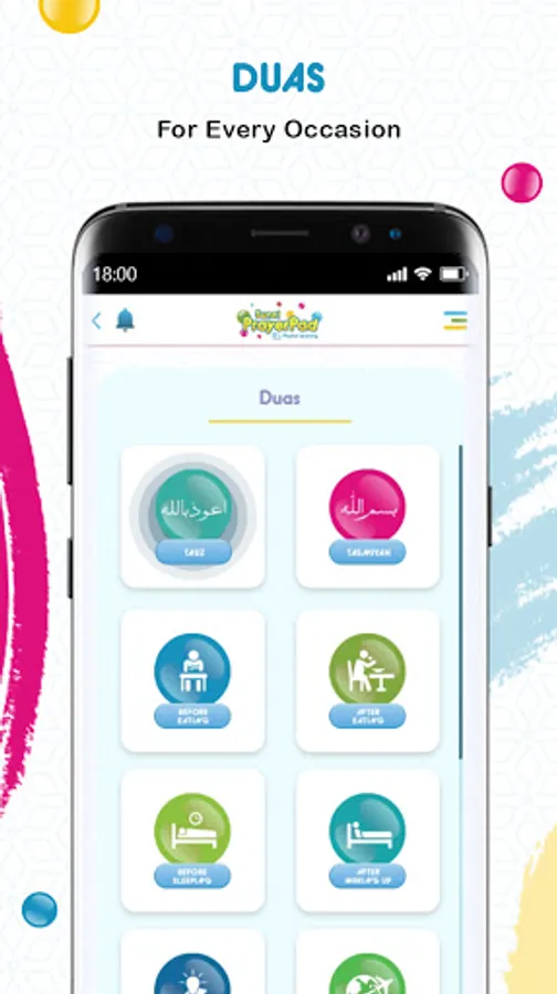 PrayerPad has pre-recorded keys to educate children about Salah, for example, prayer names, surahs, basic duas, and more. It educates learners about Salah times and what to state during different positions and various bodily movements.