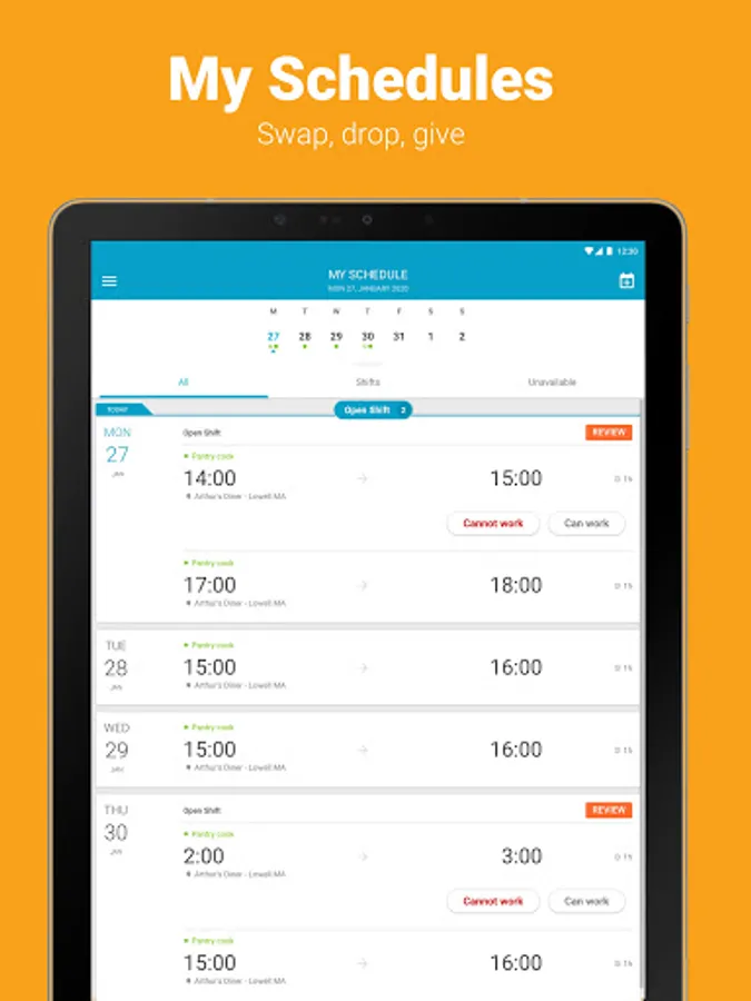 Makes the lives of your managers and employees easier. Managers save hours every week by quickly building accurate schedules, and approving shift changes at the touch of a button. They can also publish open shifts, keep connected and stay on top of business performance on the go. Employees get more exact schedules, and can quickly and easily requests swaps, suggest unavailability, volunteer for open shifts, request time off and view payroll information, while staying connected with the business, their managers and their colleagues. Managers get out of the back office so they spend more time with their teams and customers, and employees feel happier and more engaged with the business, improving productivity, company culture and employee retention.