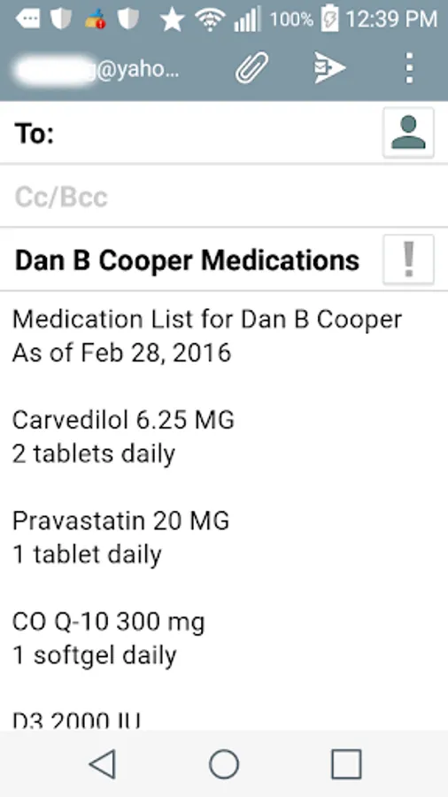 You bet it is. Worked for me already. Went to a new dentist recently (the old one kept raising his prices). When his receptionist gave me the medical history form, I powered up my phone and sent him my drug list with just a couple of quick clicks, right there in his office. I was prepared. You will be too, after you install this app. Might even come in handy during emergencies.