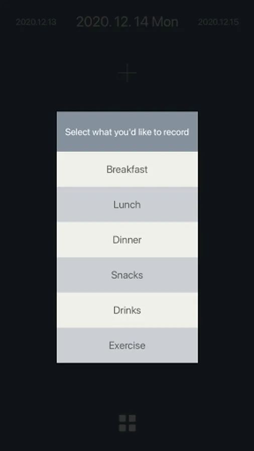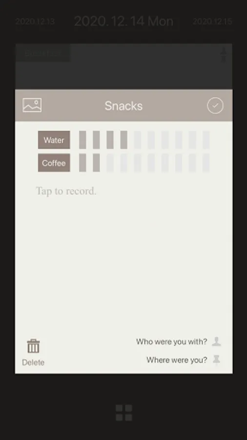 2. Record snacks, coffee, water, and other beverage intake.