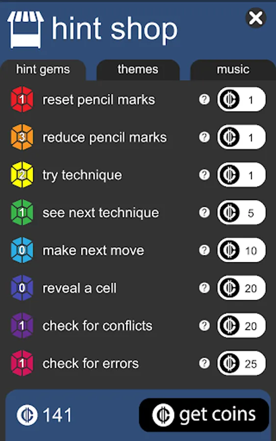 Enjoy this simple, yet challenging Sudoku app that is great for novices, veteran Sudoku players, and everyone in between! 10 Minute Sudoku features unique ways to play this classic puzzle game, including cell highlighting for neighbor/matching cells, a wide variety of hints to help you through the difficult board, tools to locate groups of pencil marks, and a What-If feature that allows you to tinker with the board without permanently ruining your game. Earn coins for each completed puzzle to unlock extra music and themes. With billions of potential puzzles that are generated without the wait of loading screens, this new world of Sudoku awaits you.