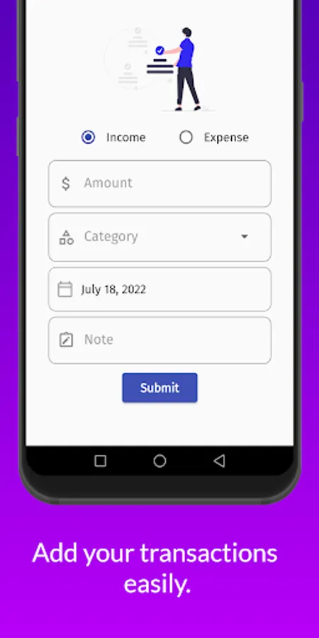You will always be reminded to add your financial transactions. The app will show you , where your expenses are too much and always calculate your income and expenses. It is much easier to do this by using income categories (salary, business, freelance, etc.) and expense categories(food, transportation, shopping, health care, etc.).