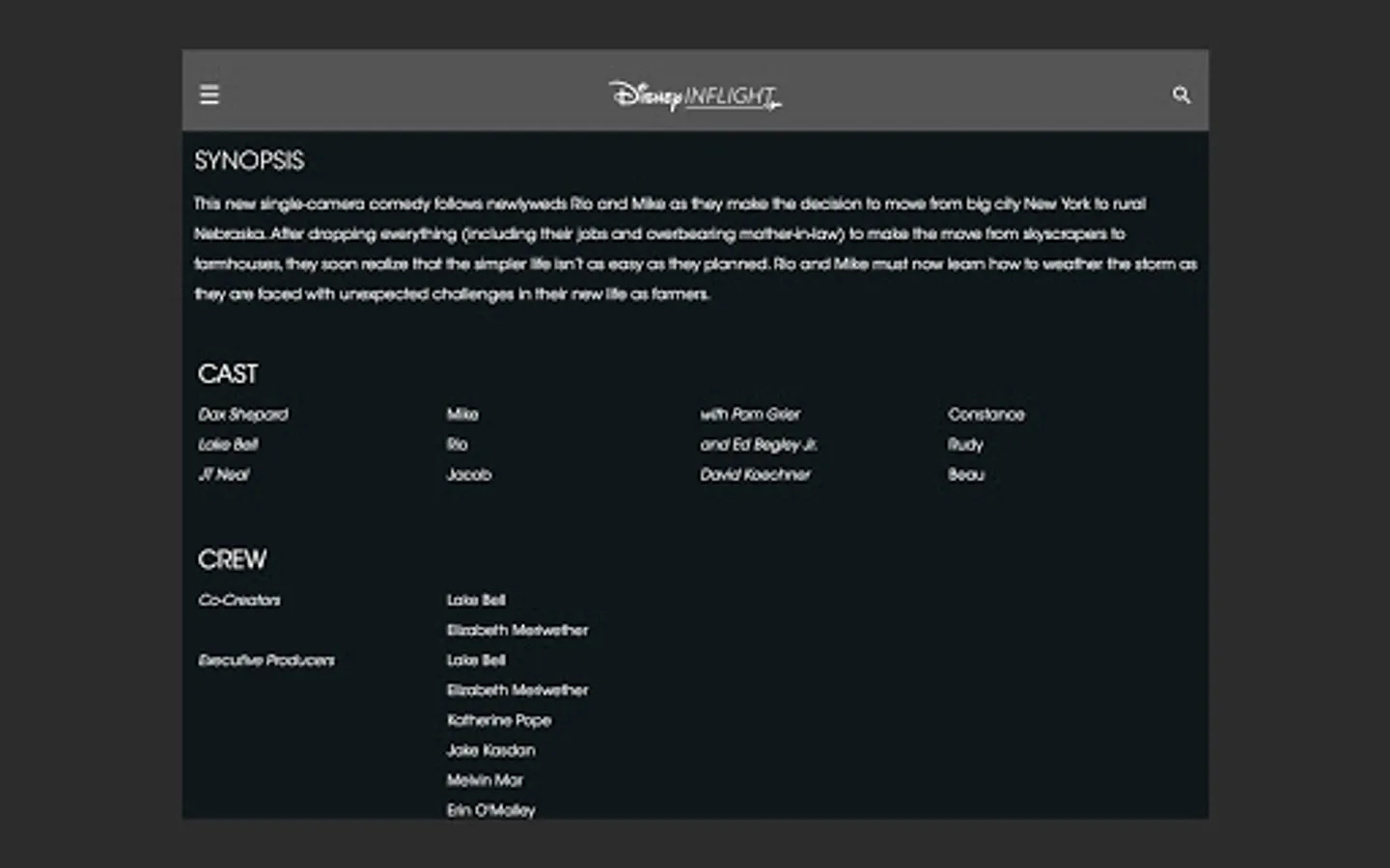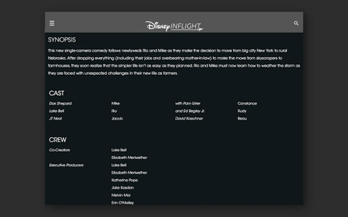 Walt Disney Direct-to-Consumer Airlines' Disney Inflight app is an account-based streaming service owned by The Walt Disney Company. Watch your authorized movies, series, and award-winning documentaries on-demand. The Disney Inflight app is available on iPad, iPhone, Android and Apple TV.
