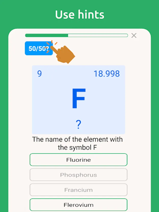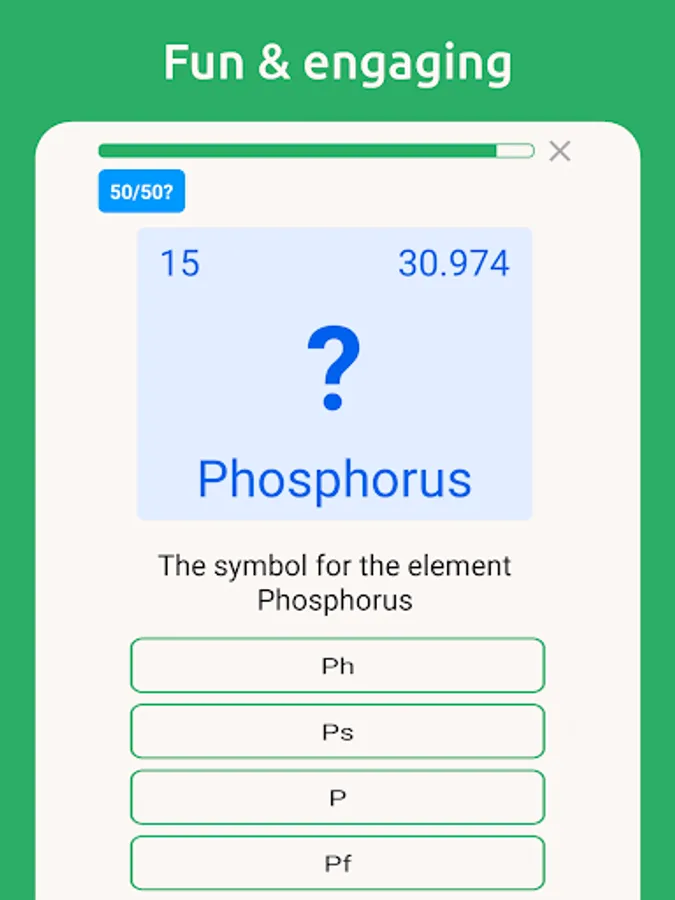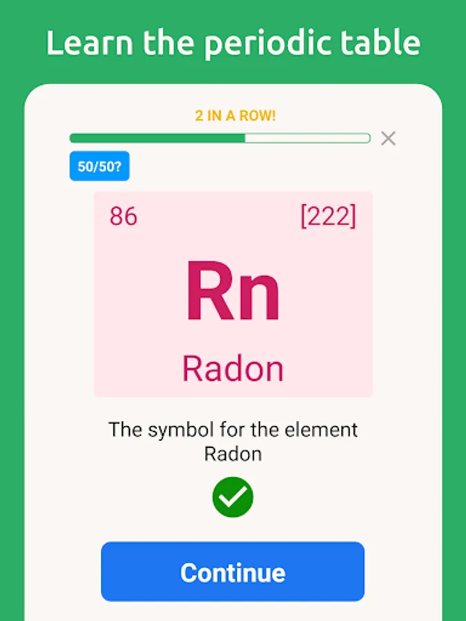 You will never lose! Our goal is to help you study chemistry and periodic table elements. Think of our app as your fun chemistry tutor: practice as much as you want, go through the levels multiple times and learn chemistry online wherever you are.