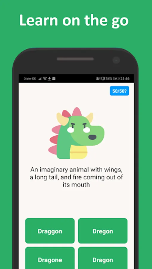 Take it easy & complete levels with multiple choice or challenge yourself with “type it right” questions. Spell it right!