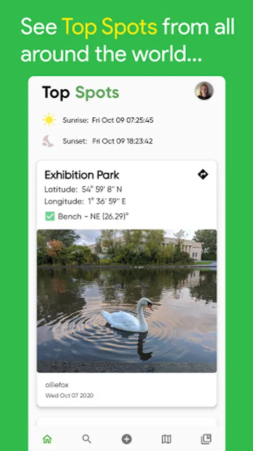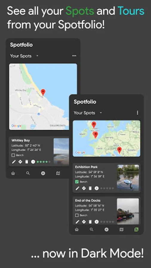 • Add your own favourite Spots and Tours to your “Spotfolio” and join the large collection of other user added locations.
