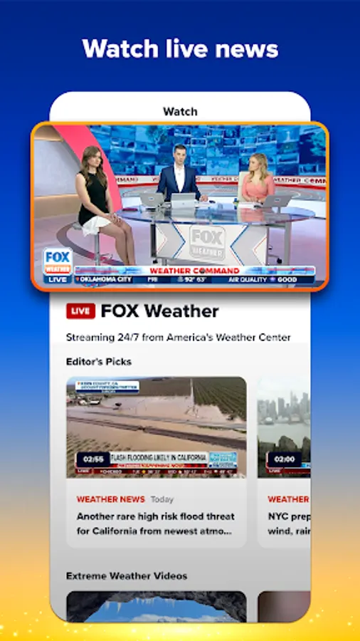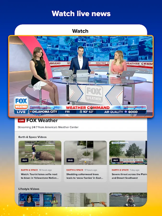 Tap into live streaming and on-demand forecasts, severe weather video clips, and more from America’s Weather Team, bringing you the story behind the weather - no login required and always on.