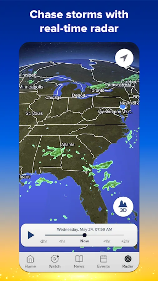 View storms using our interactive storm radar, and zoom into your local area. The location of our advanced weather radar adjusts with the locations you have set in the app.