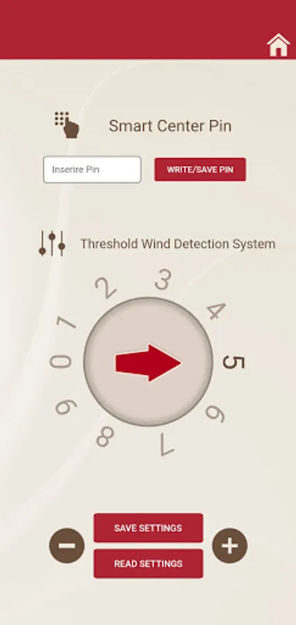 - Regolazione Wind Detection System (regolazione della chiusura automatica del tendalino in caso di forte sollecitazione, solo per tendalini eagle): l'app permette di modificare il valore di intervento.